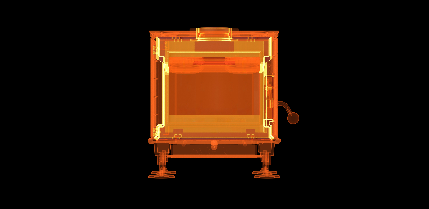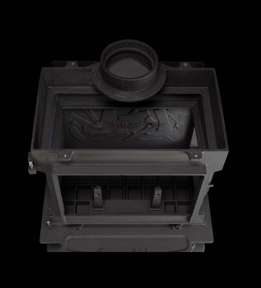 이 아름다운 불꽃은 연소 온도와 공기 흡입량 조건이 적절할 때 나타납니다. 온도가 높을 때 공기 흡입을 줄이는 공기 제어로 연소가 천천히 이루어져 고효율 연소가 됩니다. 오랜 주조·제조 기술로 다져진 성형 기술을 바탕으로, AGNI 난로는 범종처럼 한 조각으로 주조된 두꺼운 벽 내부 박스를 갖추고 있습니다. 이 구조로 이전에 없던 높은 기밀성을 실현하고, 적은 공기를 정밀 제어하여 고효율 연소를 유지하며 아름다운 불꽃을 쉽게 즐기실 수 있습니다.